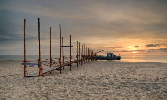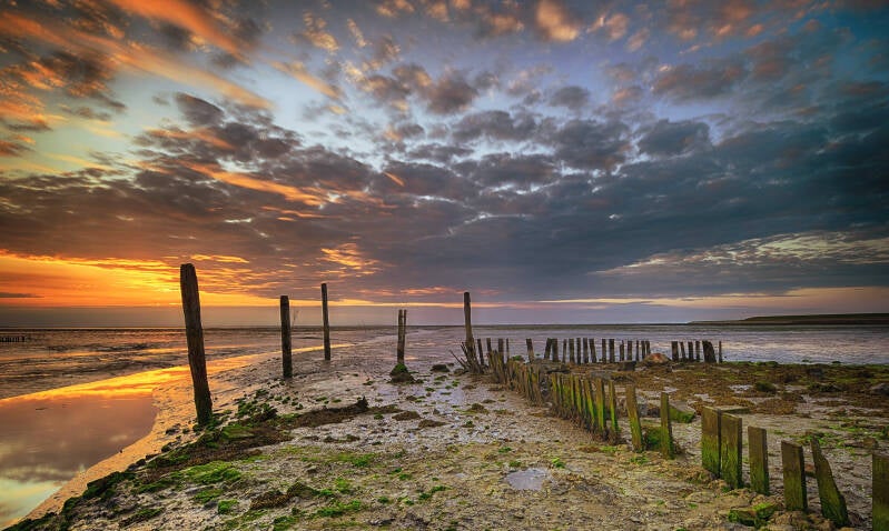 706. Texel steiger de Cocksdrp bij zonsopkomst (8959-8963)